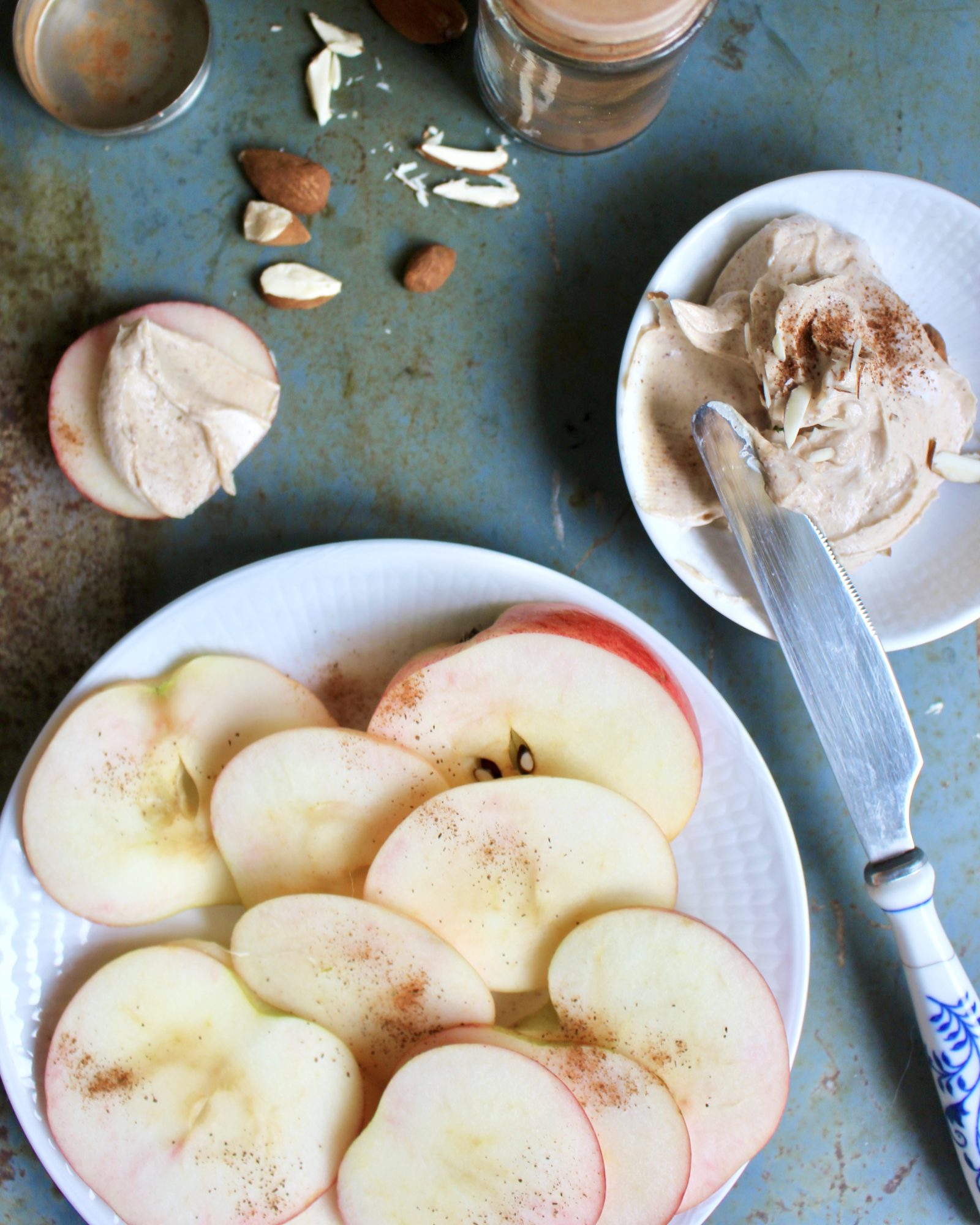 Ett bra mellanmål innehåller, precis som en väl balanserad huvudmåltid, kolhydrater, protein och lite fett. Äpple är en bra frukt GI-mässigt eftersom att den inte höjer blodsockret lika mycket som många andra frukter och innehåller mycket fibrer. Silkestofu eller yoghurt (som du kan välja om du äter viss mängd mejeri) bidrar med protein och krämig konsistens och mandelsmöret med magisk smak och fett av bra kvalitet.