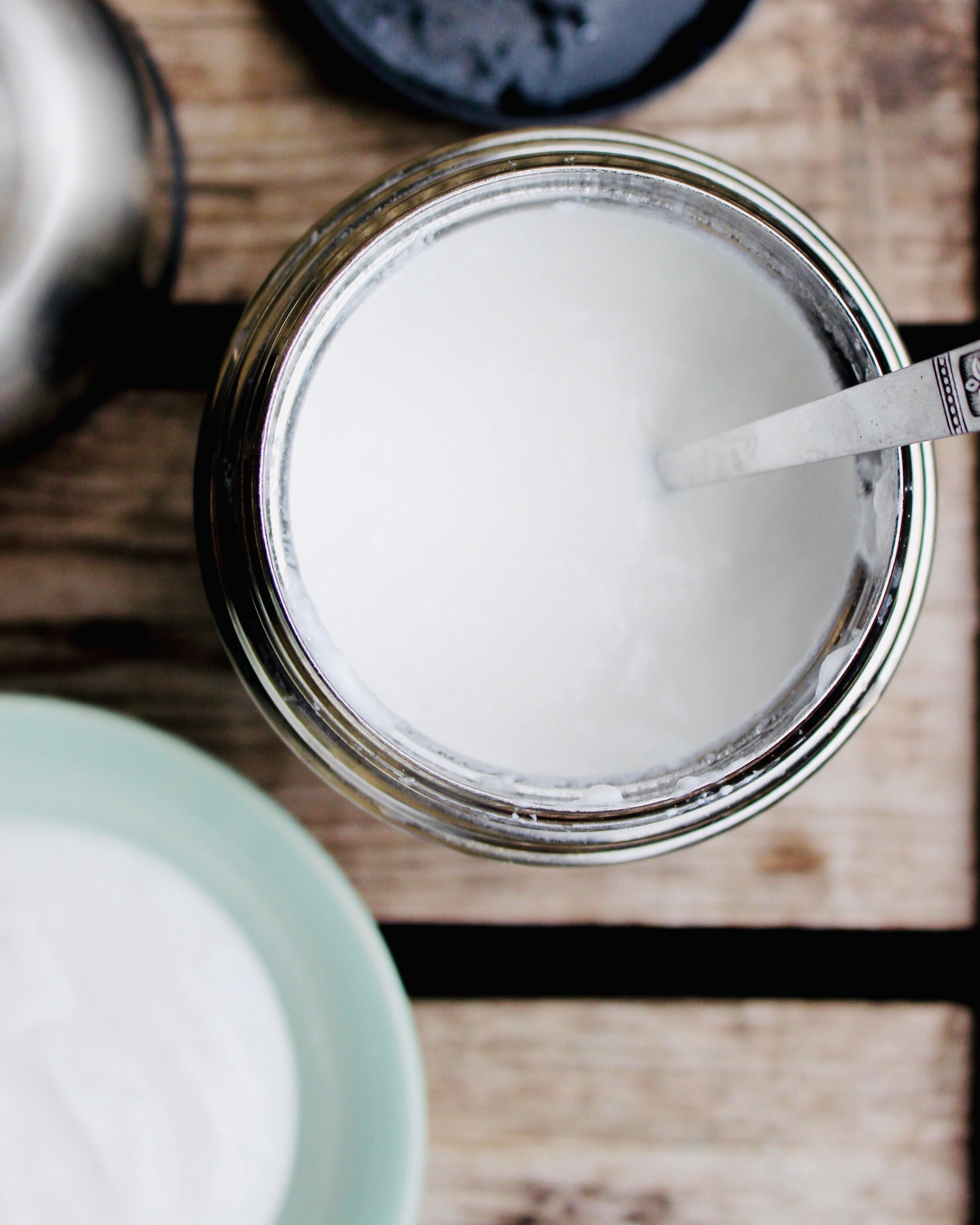 För nötallergiker funkar inte cashewyoghurt så det är en anledning att göra sin egen veganska, mjölkfria youghurt på kokosmjölk. Även enkelheten. Det är bara att röra ihop kokosmjölken med probiotikapulver och vänta… Precis som med traditionell yoghurt tillsätter man bara bakteriekultur till mjölken och låta den står framme i lagom värme.