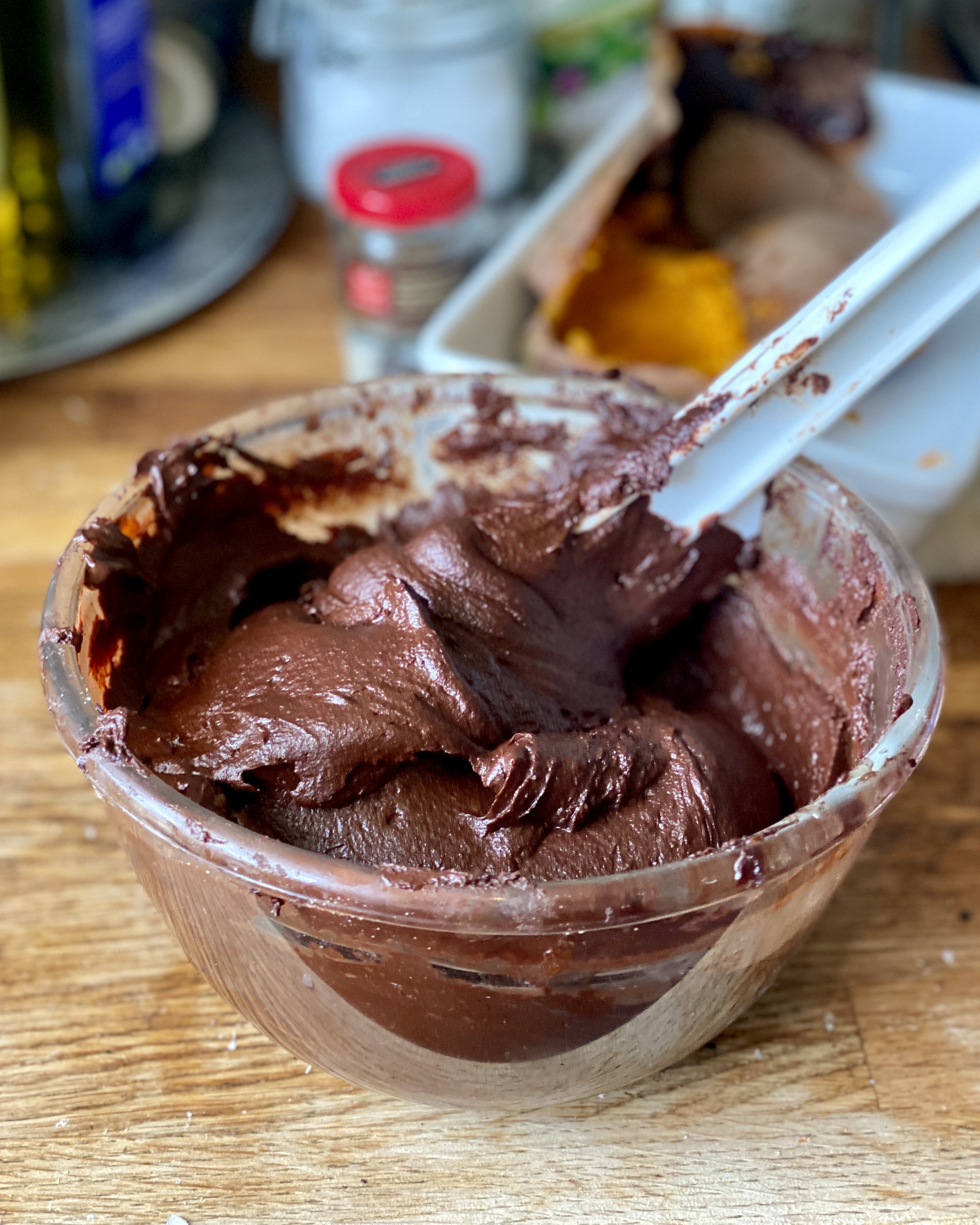 Chokladkaka med svarta bönor och sötpotatisfrosting (vegan, glutenfri)