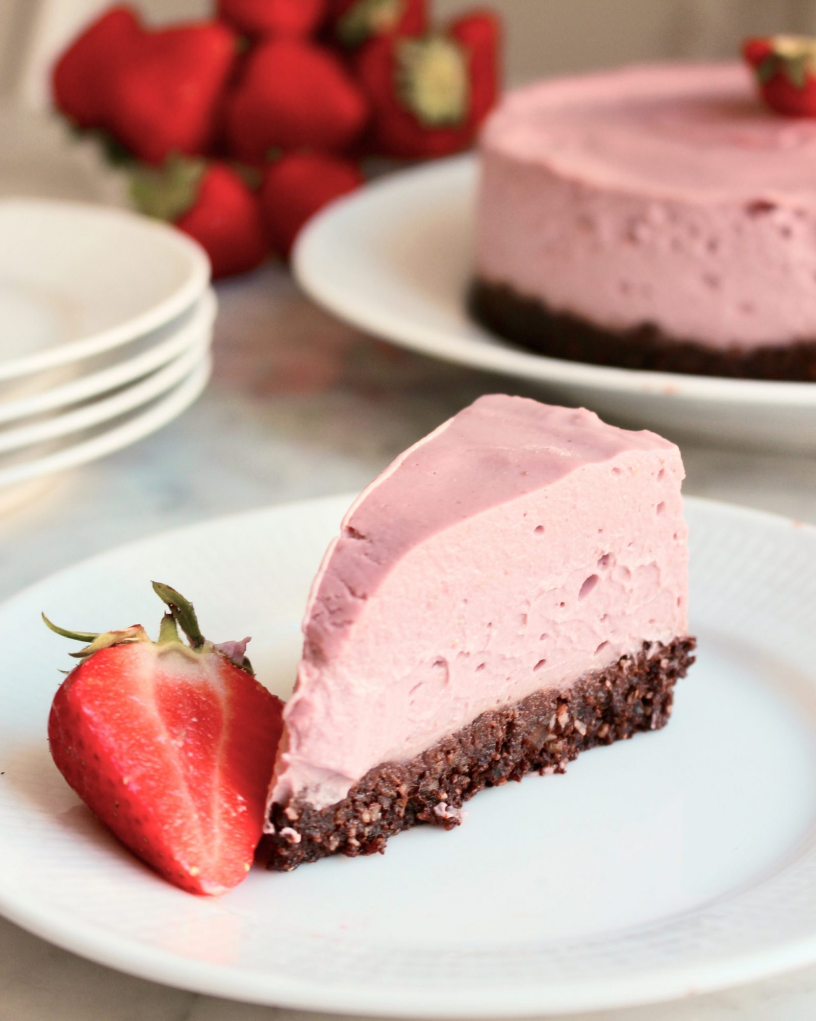 Jag valde att smaksätta botten med choklad, jordgubbar och choklad passar ju fint ihop, men man kan utesluta kakaon och smaksätta med t.ex. 2-3 tsk kardemumma istället för ännu mer mer svensk gräddtårta smak.